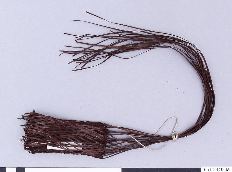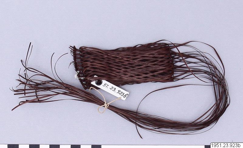 Flätade band som unga flickor har runt samlbenen. Materialet kallas äha och taget från en klättrande ormbunke, trol. en Gleichenia. Orig. nr 1584