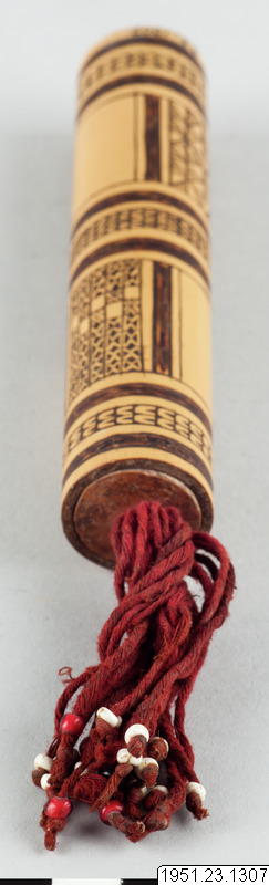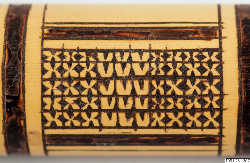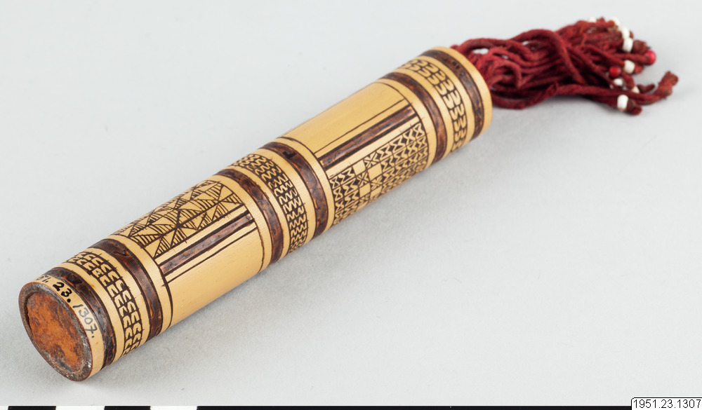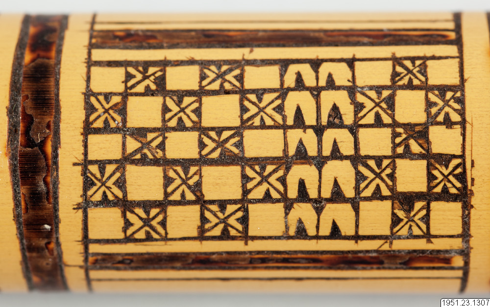 Bambudosa med ornamentik. För kalk, tóila, som användes till beteltuggningen.