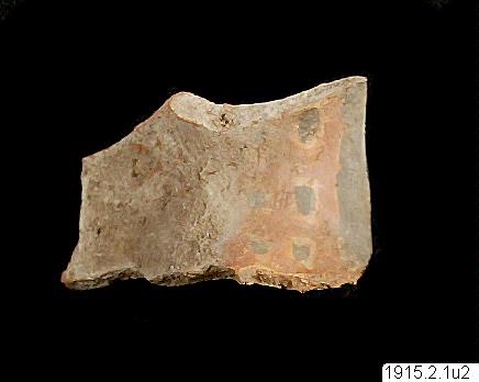 - Kantfragment av lerkruka med målad dekor på in- och yttersidorna