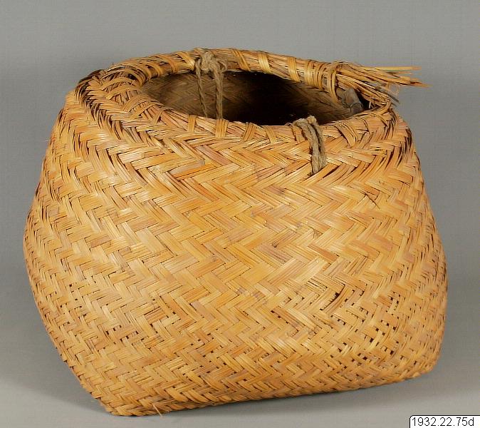 Vid katalogiseringen saknades en nätstång (b IV). Samtliga nätstänger (b I-III) voro itusågade i tvenne delar. C består av en bambustång och en liten nätkasse, D är en större korg, E en mindre dito, F ett rep med inknutna fyra stycken pinnar. I korgen E låg en annan korg märkt I, vilken saknades i originalkatalogen.