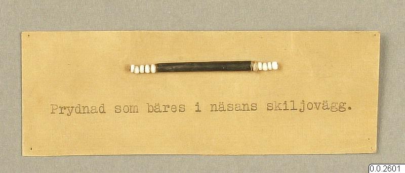 - Näsprydnad av trä och glaspärlor. (katalogkort/originalbeskrivning)