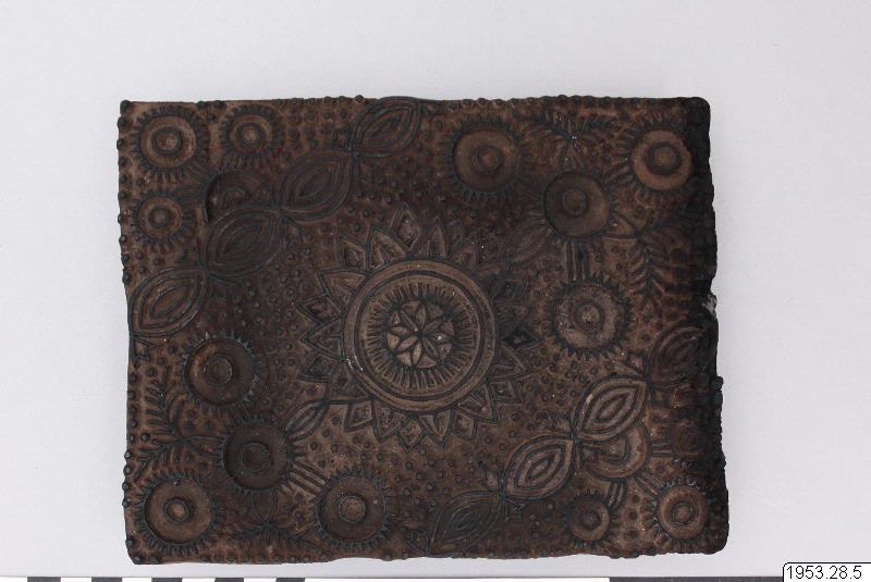 - Gammal trästämpel för tygtryck. Något brännskadad.