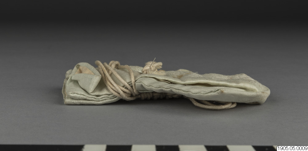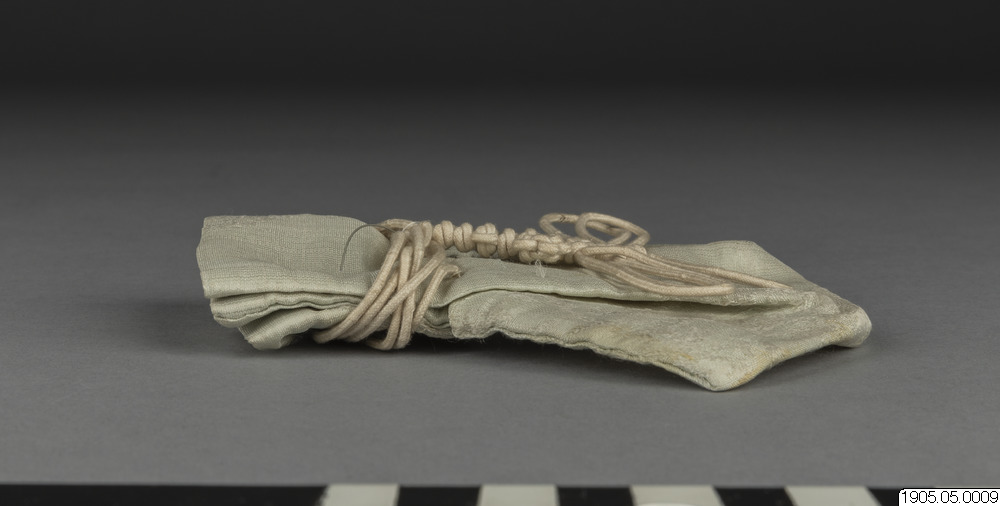 Blå portmonä till lifgördel 1937. Till kostym för ogift man.