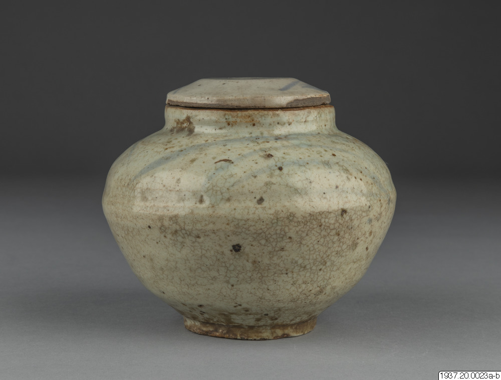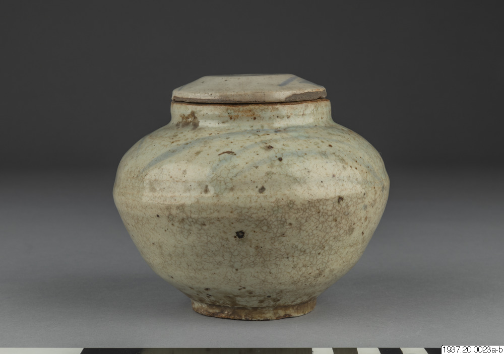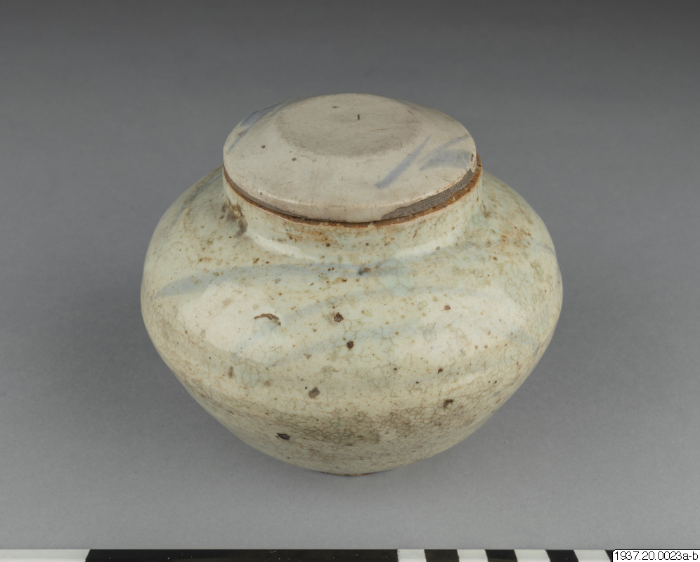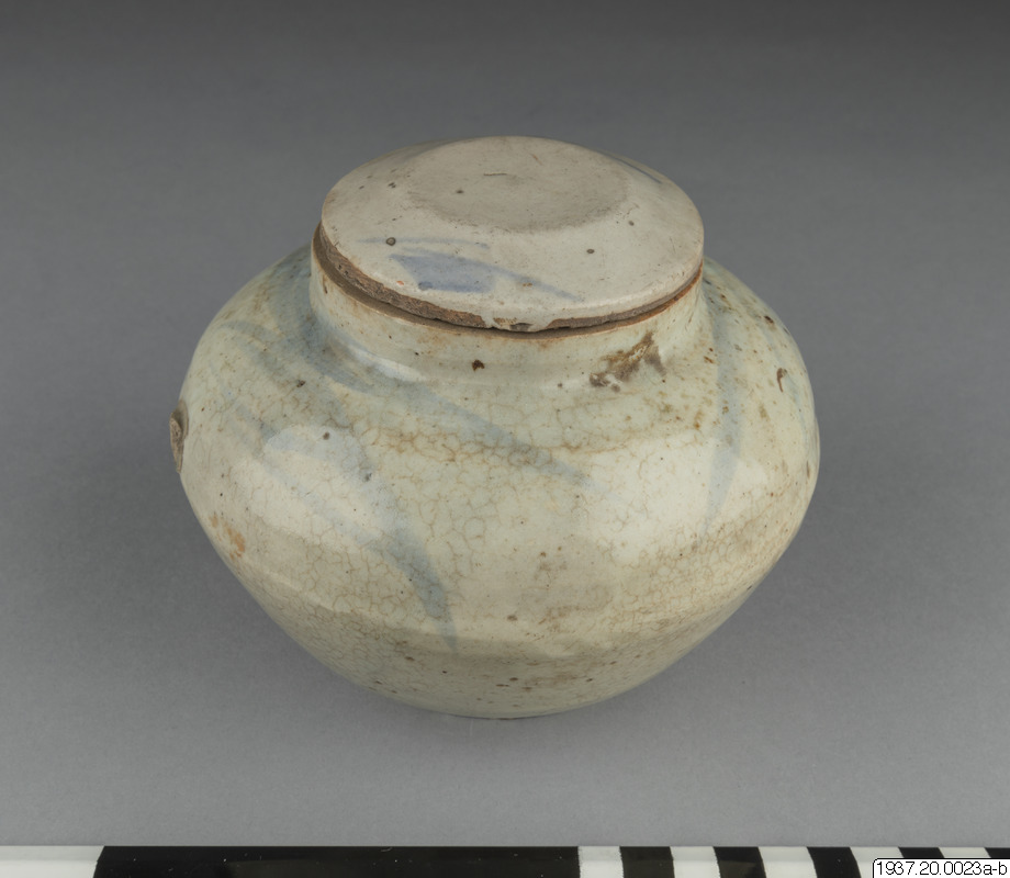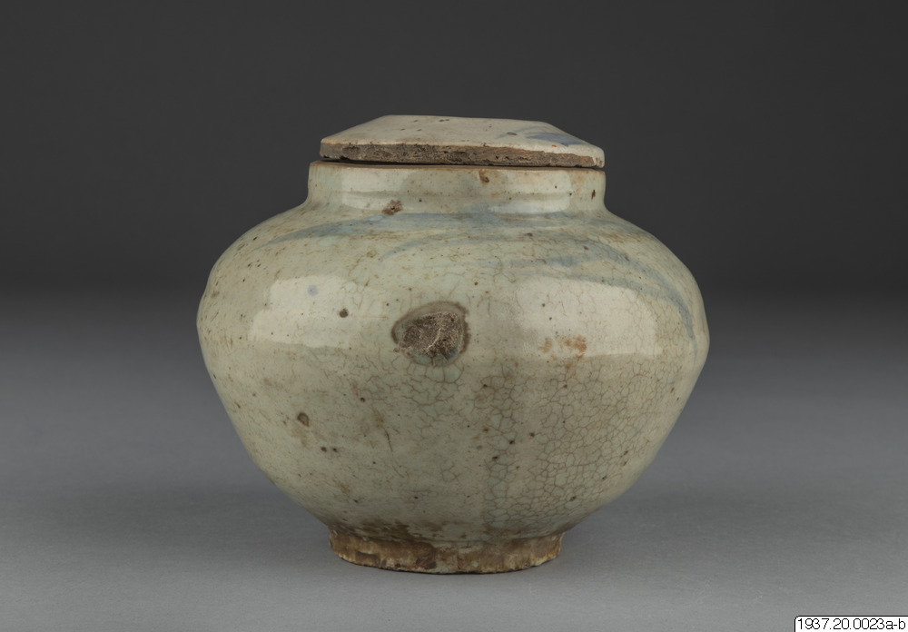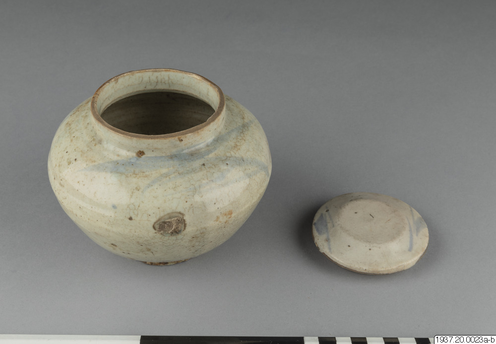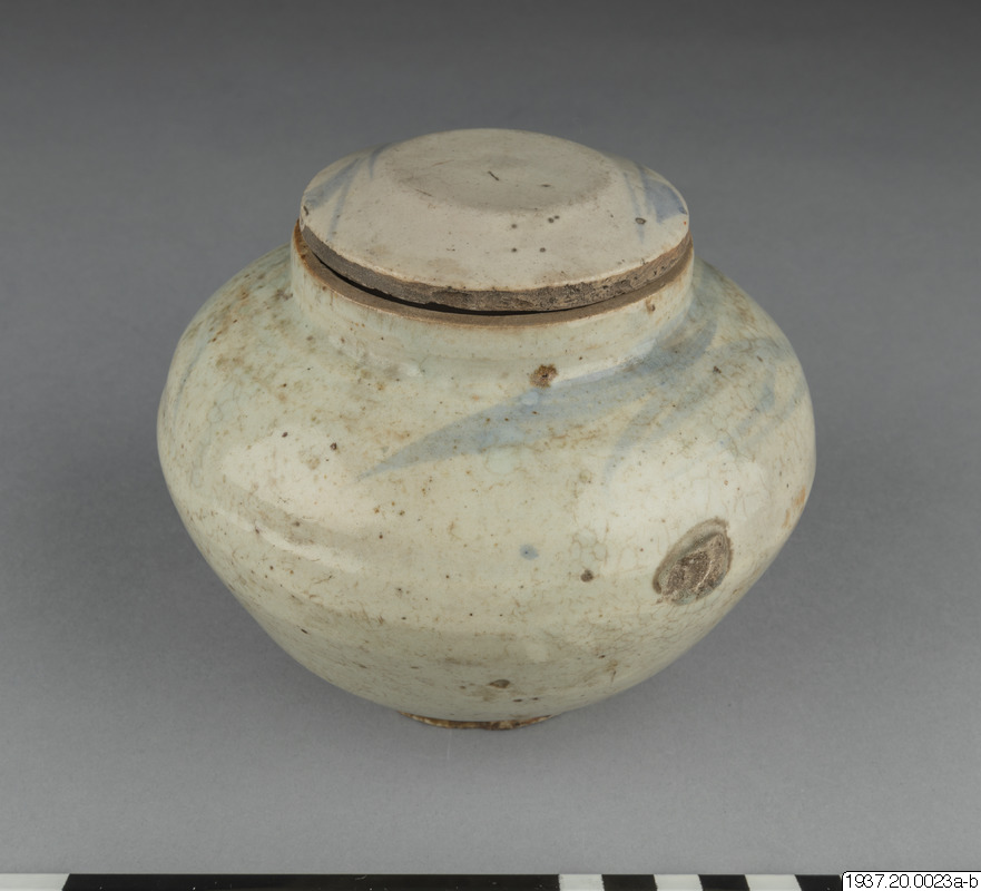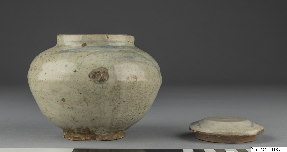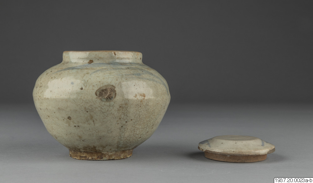 Skål av gammalt porslin med lock.