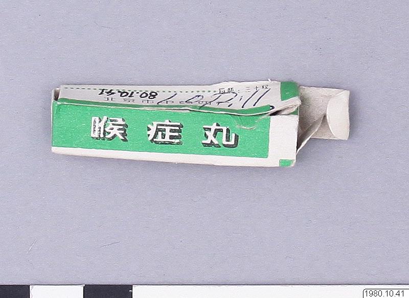 Mått: 4,6 x 1 cm (förp), 0,5 x 3 cm (burk) (katalogkort/originalbeskrivning)