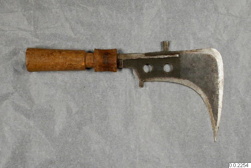 Stridsyxa -jem-jam - med brett svängt genomborrat blad.