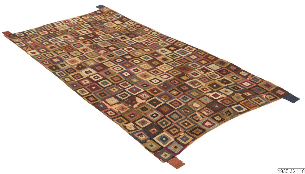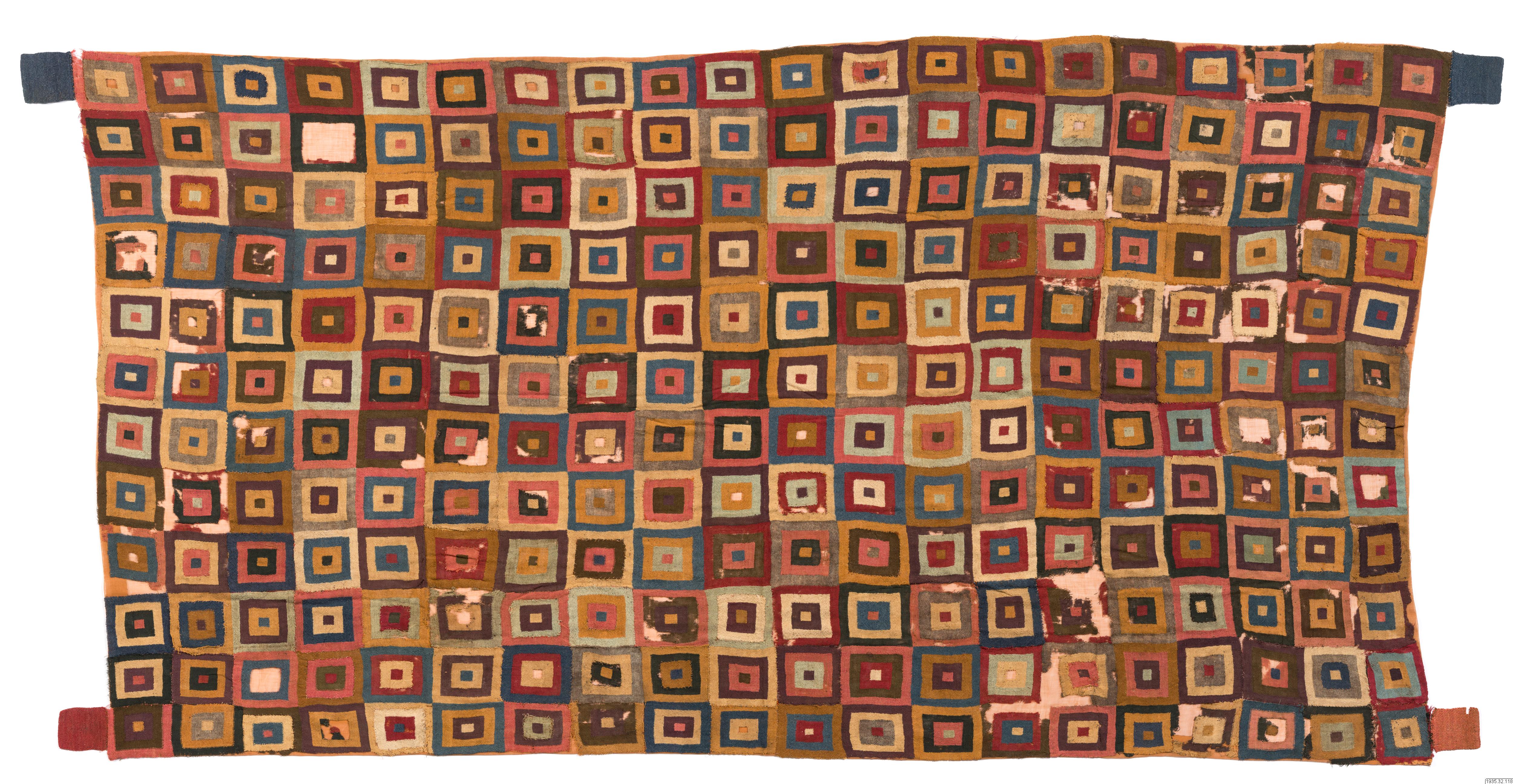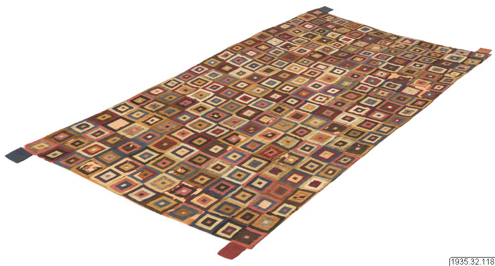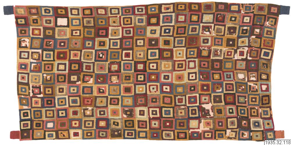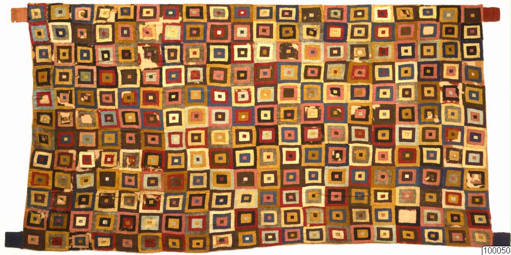 Mönster I dag har väven 240 rutor men har troligen haft 288 eller fler rutor. I dag är det 3 rutor som finns i en likadan färgkombination. En ruta består av 4 olika rutor inne i varandra, i en stor ruta finns en färg bara en gång.