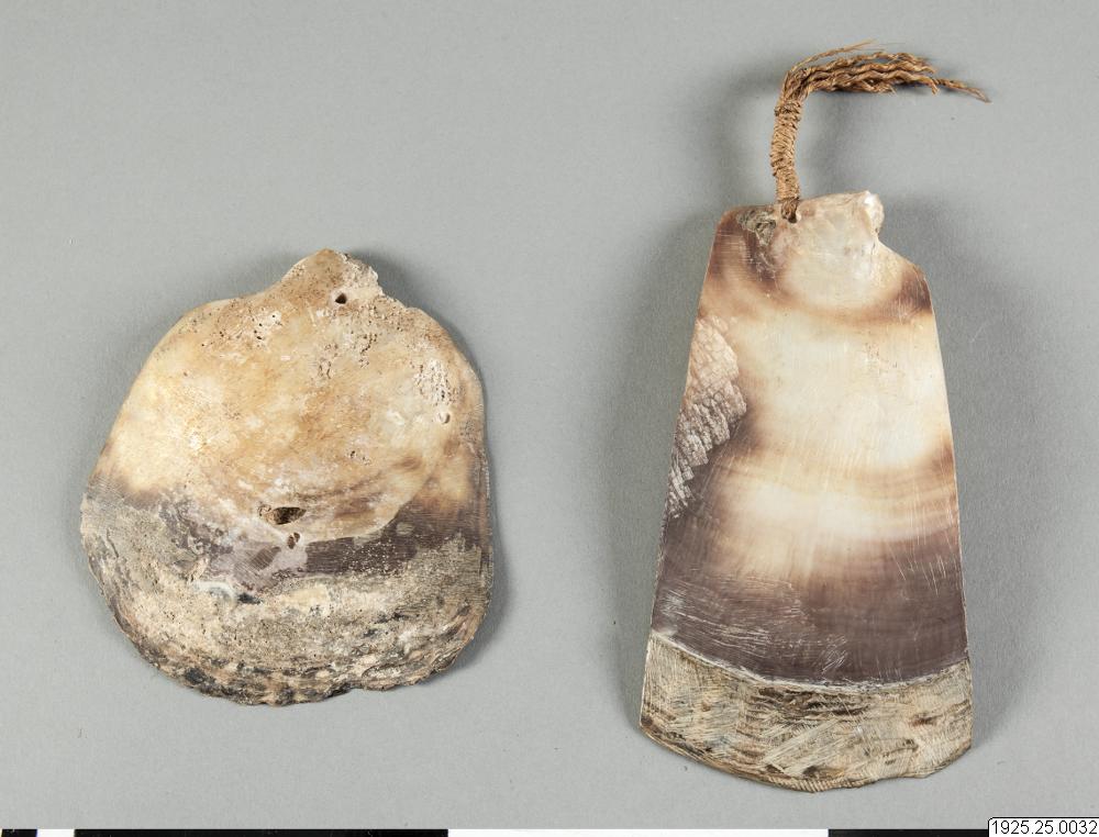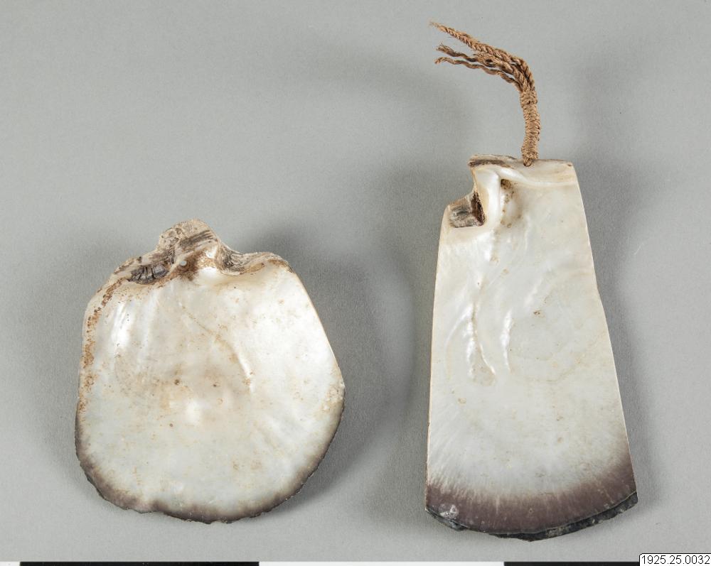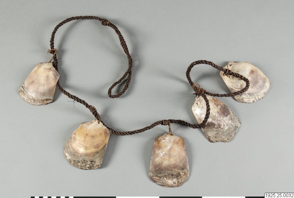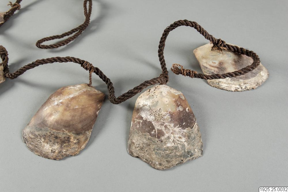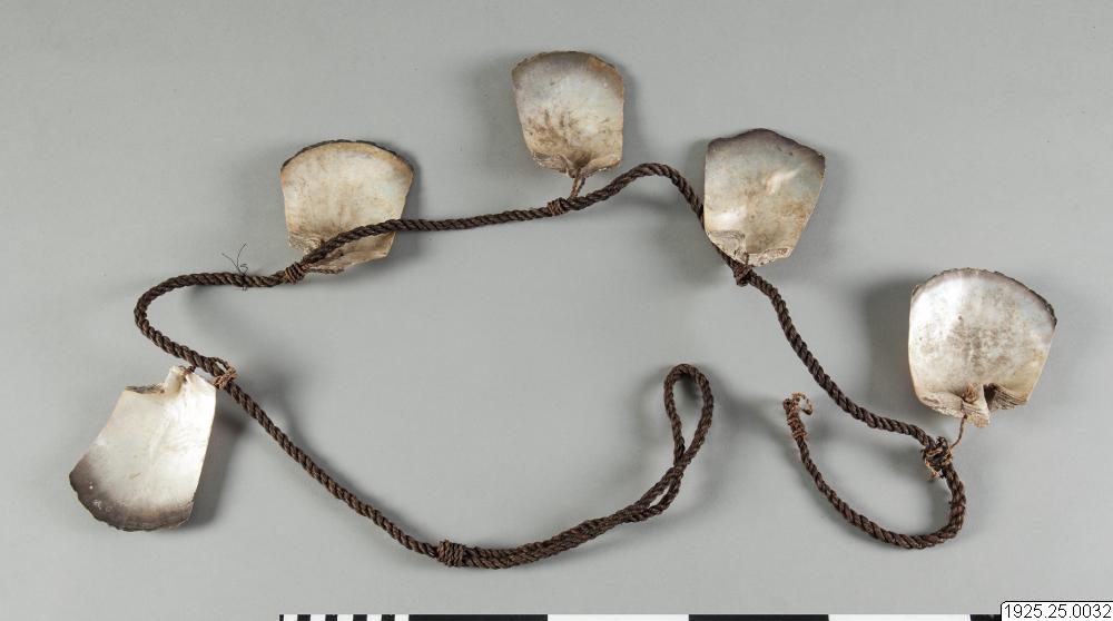 - Musselpengar, uppträdda på ett snöre. Kallas "jarr" eller "wutheir". (katalogkort/originalbeskrivning)